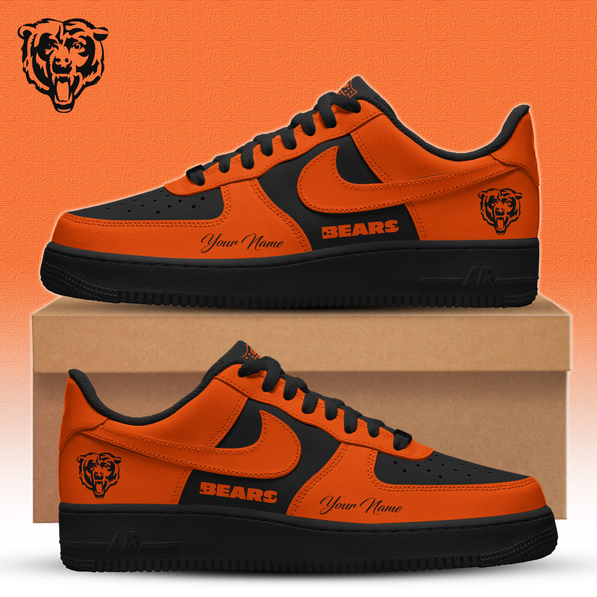 Chicago Bears | Premium NFL Special Black in Black Limited Edition Shoes AF1