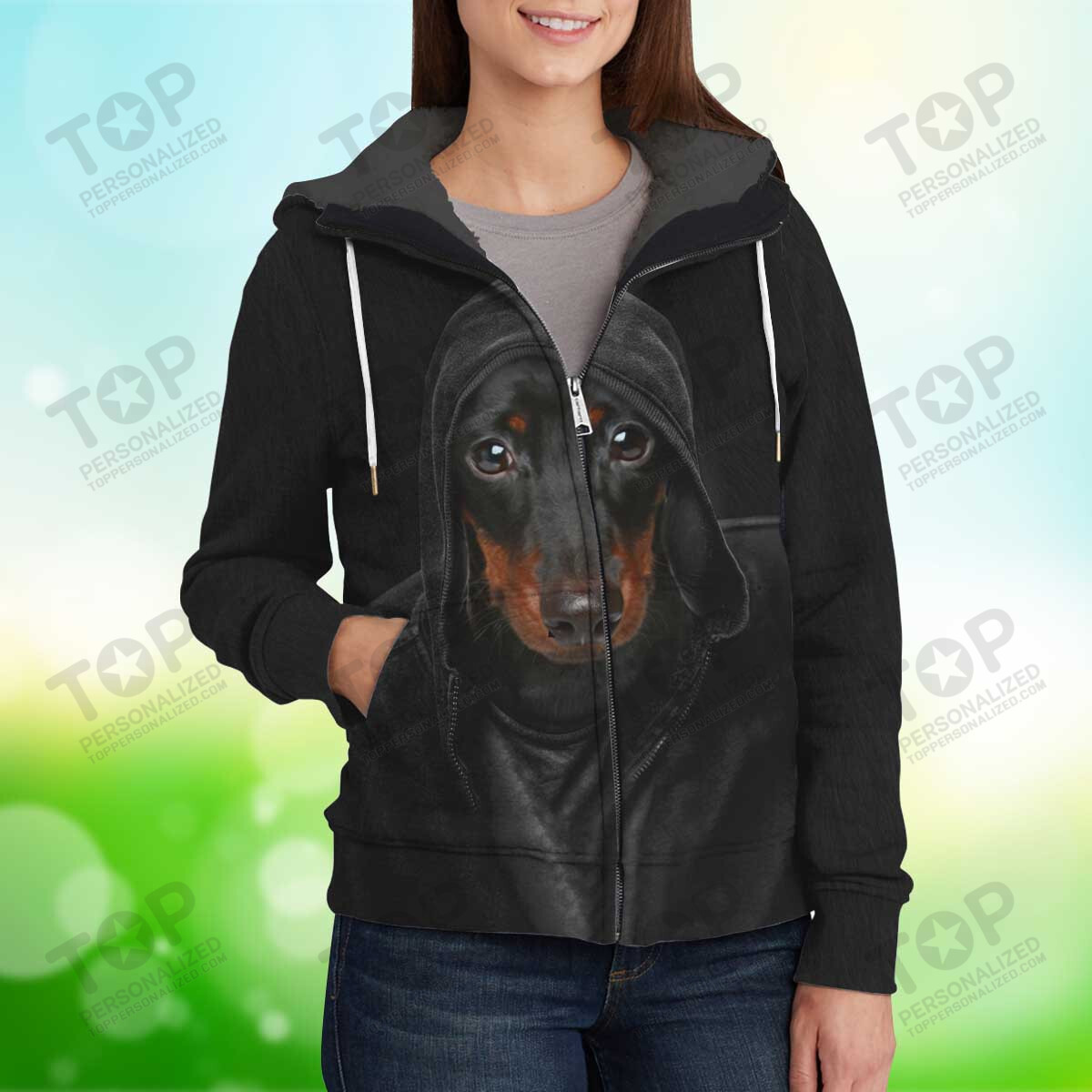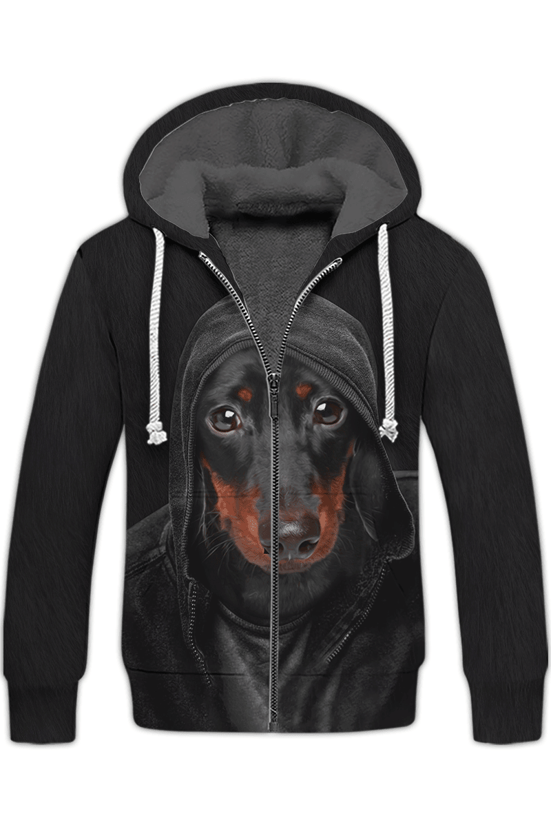 Dachshund Fleece Zipper, Dog Fleece Zipper For Humans