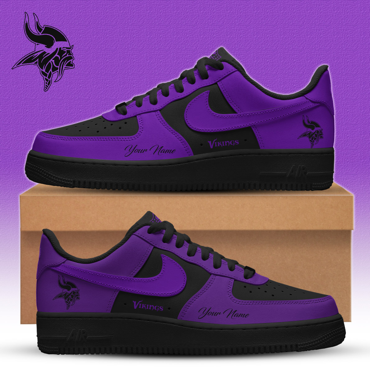 Minnesota Vikings | Premium NFL Special Black in Black Limited Edition Shoes AF1